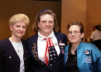WDCAWBA Past President Allen (left) appears with Cheryl McGraw (center, who since has resigned her position as second vice president), and Delegate Carla Sessions, the association's ninth-ranked bowler for 2001-2002 who captured the June 14-15 Virginia Bowling Queens event at Fort Belvoir.