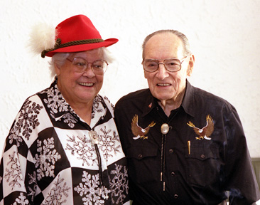 President Peggy Varney and Secretary-Treasurer Bert Sweigert of Senior Mixed Gray at Falls Church enjoy a moment at the conclusion of their league's end-of-season awards luncheon at the Italian Cafe.