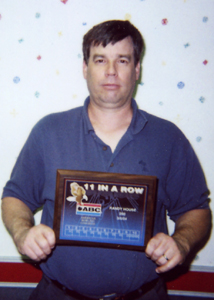 Danny Pilkington scored a 290 game and was presented an ABC "11 in a Row" plaque (photo: Director Carl Kilby Sr.).