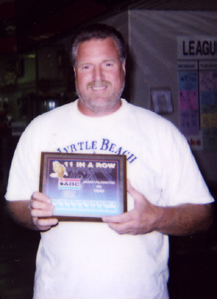 Randy House holds the ABC "11 in a Row" plaque he received for his 290 game (Cress, Medina and House photos: Timothy Bailey Sr).