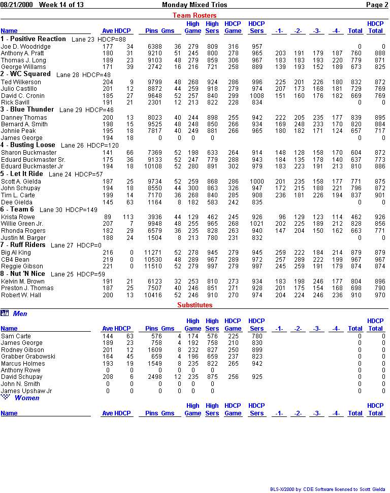 | Bowlers per team | 3 |